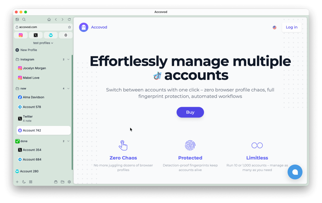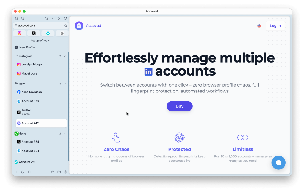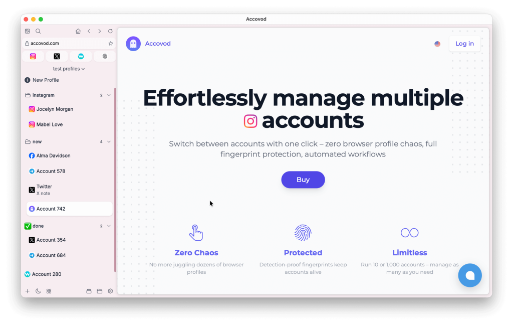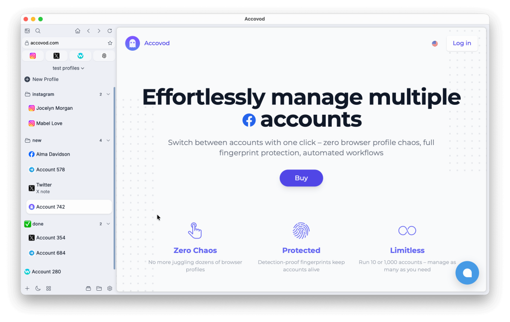 В новой версии Accovod 6 мы сосредоточились на ключевых направлениях: производительность и удобство работы с большим количеством профилей. Обновление делает повседневную работу быстрее, стабильнее и заметно комфортнее.
