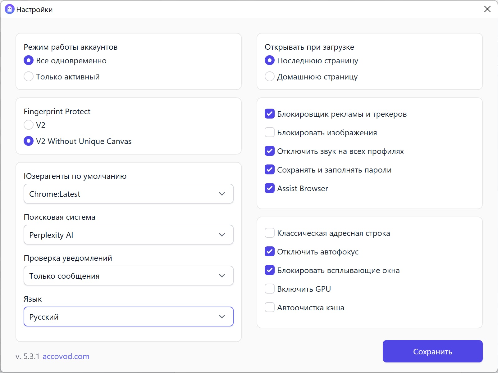 Неудобно запускать каждый браузерный профиль отдельно, запутались в окнах? Используйте Accovod, все профили реально в одном месте в клике от переключения.